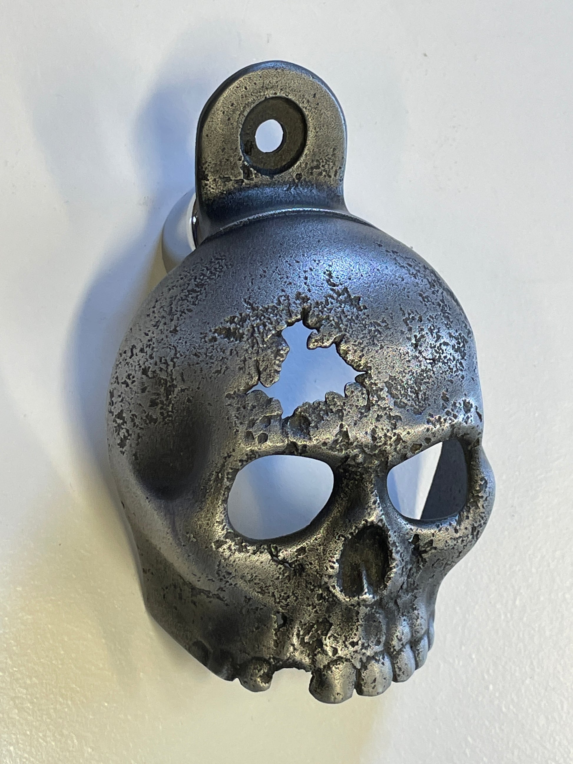 You are looking at a one of a kind Skull horn cover cast individually by hand from JKETNER original sculpture and finished with an aged look.